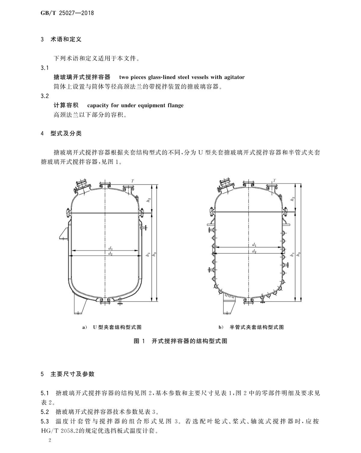 GBT25027-2018搪玻璃開式攪拌容器型式、主要尺寸及基本參數(shù)